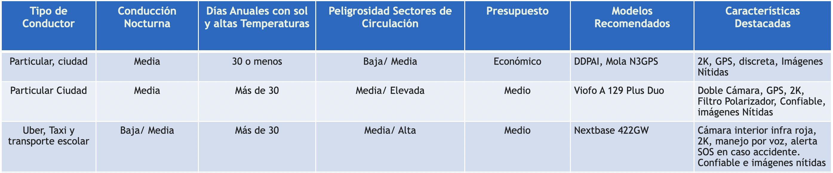 Los videos obtenidos desde las dashcam deben servir como evidencias válidas y ojalá indisputadas ante Juzgados y Jueces, por tanto junto a una imagen clara de lo ocurrido, es muy deseable que la filmación contenga la ubicación del accidente, la fecha, la hora y la velocidad de circulación. Estas características se obtienen de aquellas dashcam con GPS, incorporados u opcionales, y son muy deseables resoluciones de 1440P o 2K o superiores.